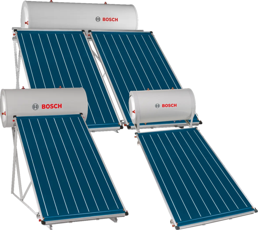 El sistema compacto termosifón Bosch está compuesto por 1 o 2 captadores, 1 acumulador, 1 kit de conexión y estructuras de soporte.